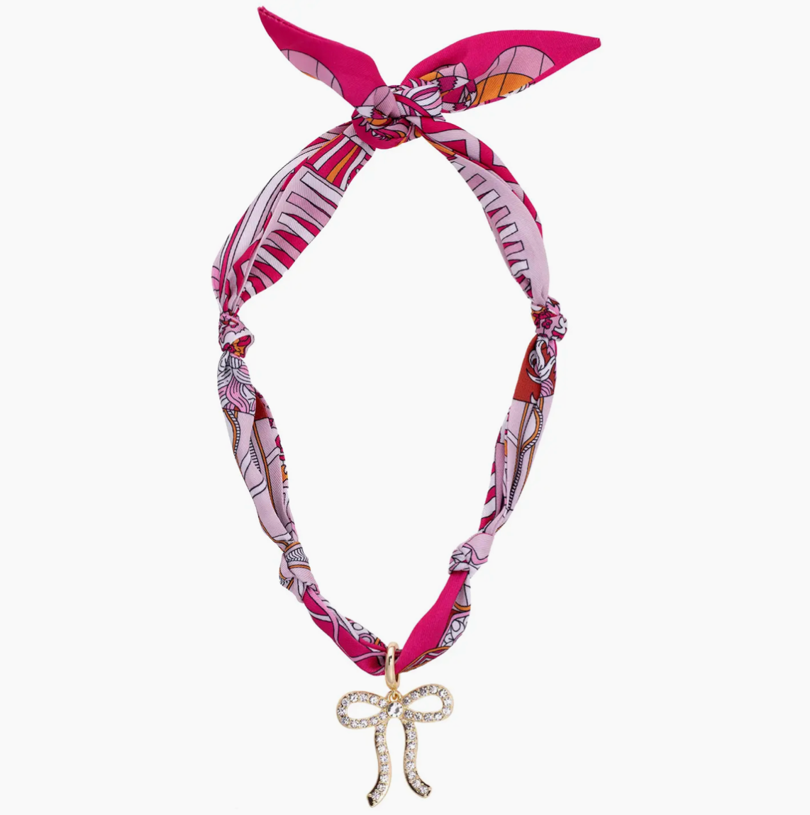 Canvas Style - Cassie Pave Bow Scarf Necklace in Fuchsia/Orange/White