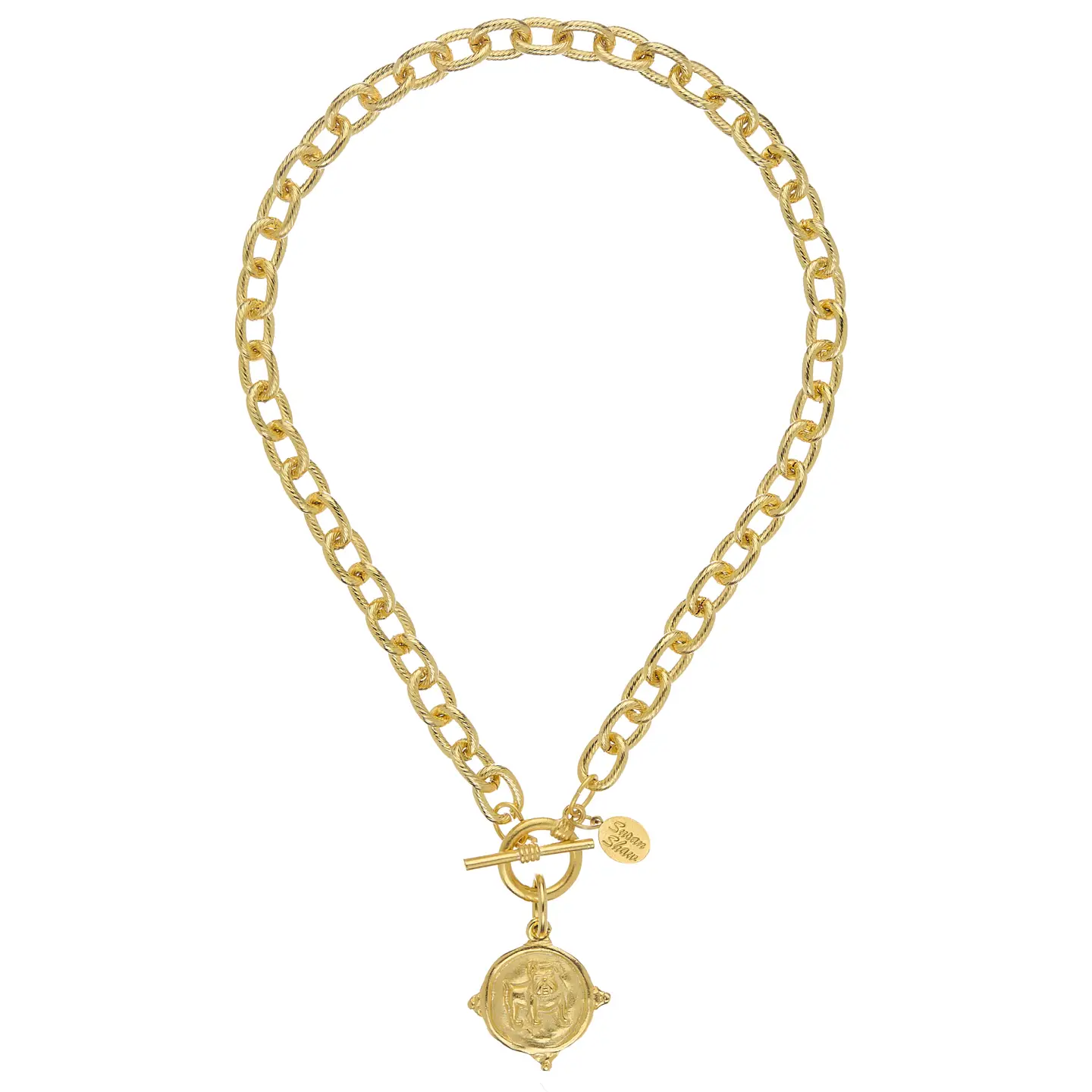 Susan Shaw -Bulldog Intaglio On 16" Toggle Necklace