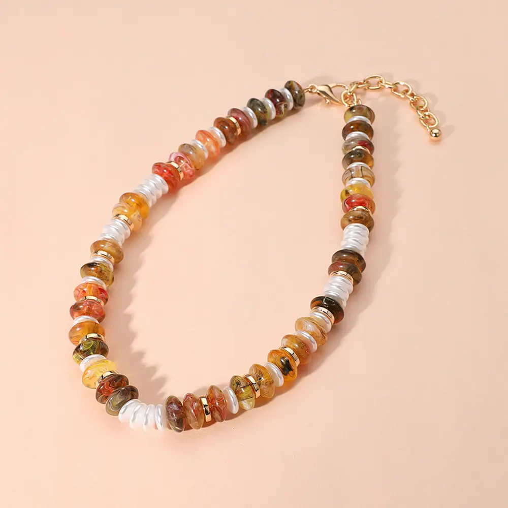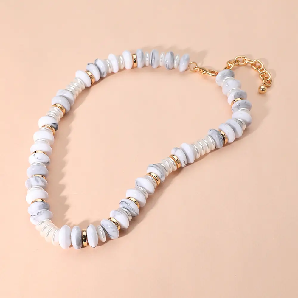 Sensibling Corp - Marbled Round Shaped Beads Pearl Beaded Necklace