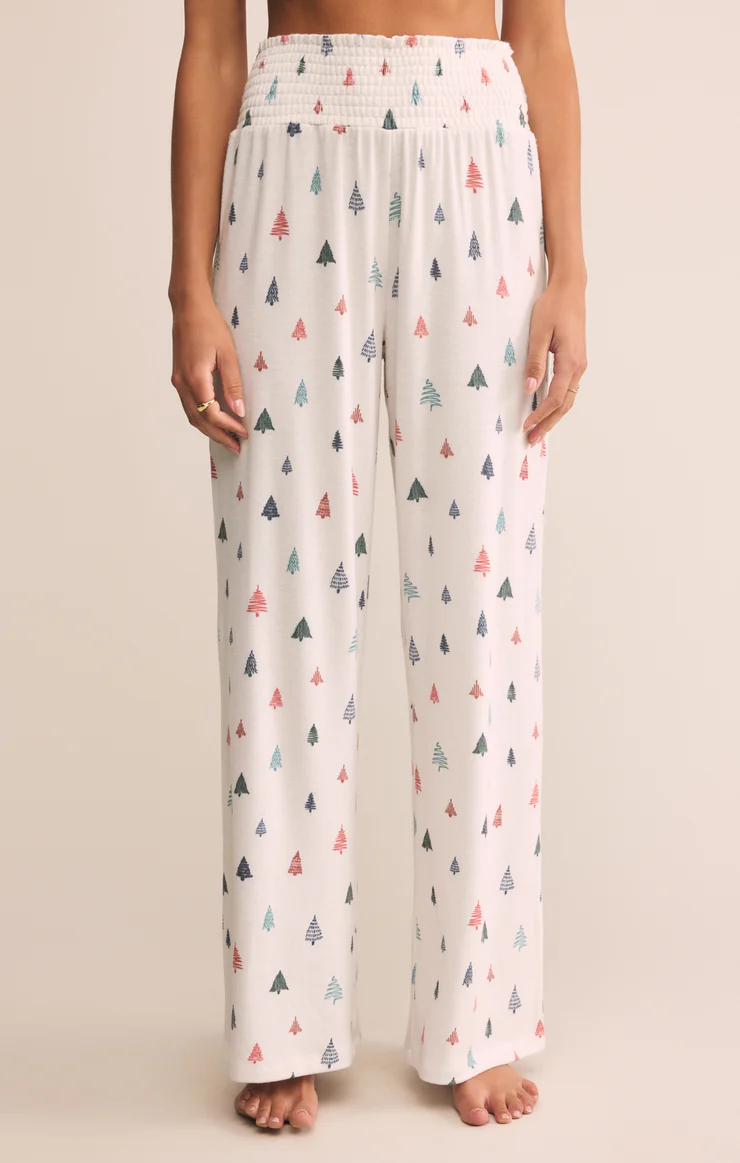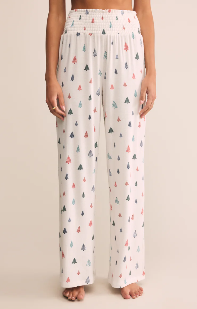 Soft, festive, and flattering. Meet the pant that brings cozy cheer to every moment. A cozy update to our best-selling Dawn Pant, this holiday-ready style is made from our brushed sweater knit for the softest feel. Designed with a festive tree print and flattering fit-and-flare silhouette, it features a smocked waistband that makes it perfect for lounging or gifting.