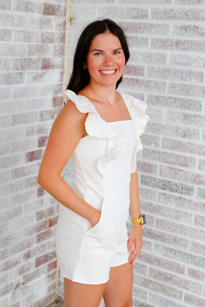 This romper is perfect for any occasion! Made with stretch denim, it features adjustable straps, convenient pockets, and a playful touch with ruffles. Available in chic red or classic white, this romper is sure to be a wardrobe staple. (No need to compromise fashion for comfort, am I right?)