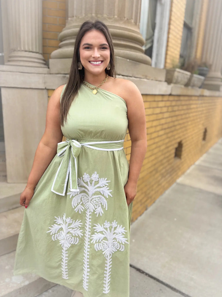 Heart of Grace - Royal Palms One Shoulder Midi Dress