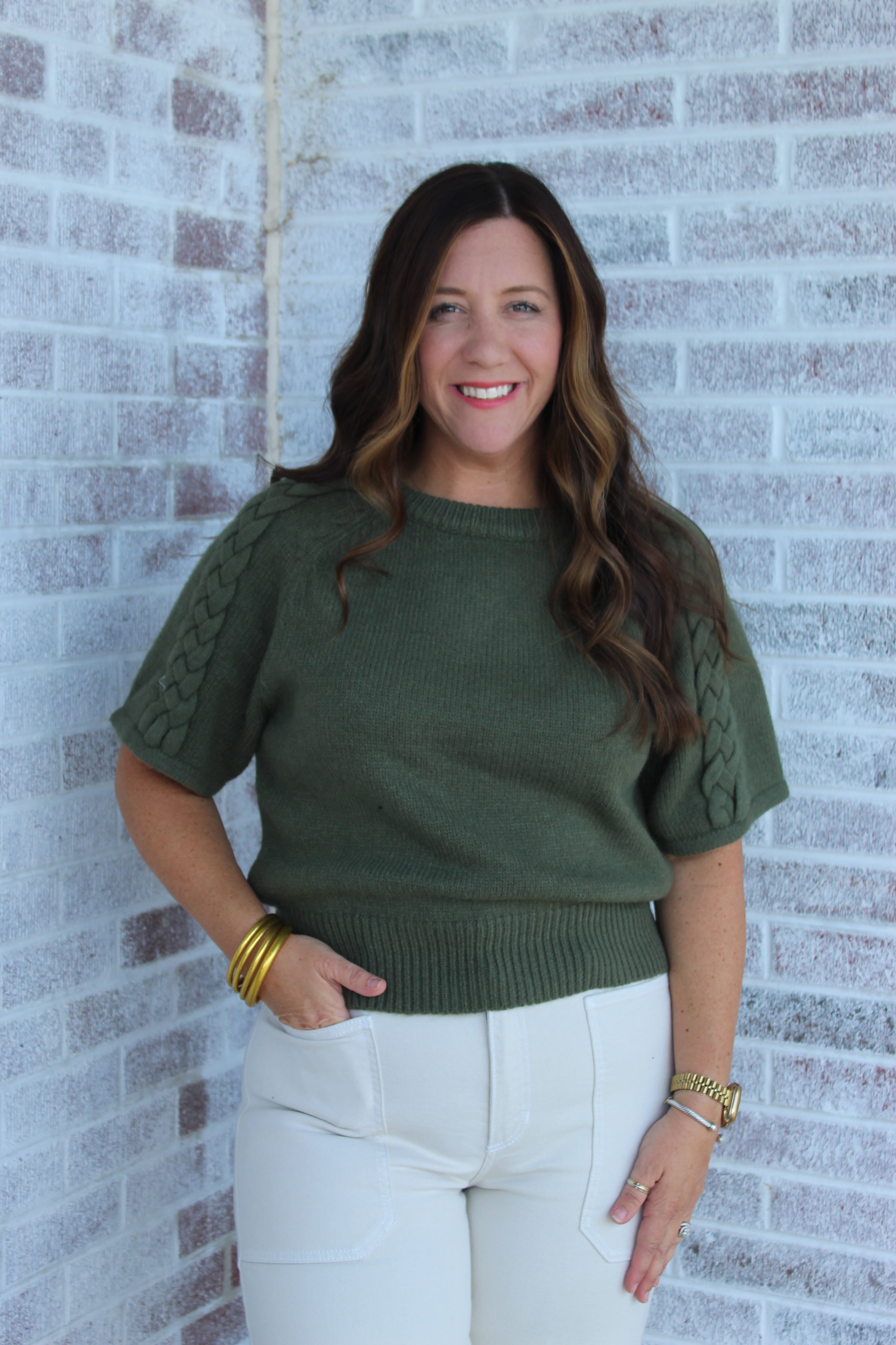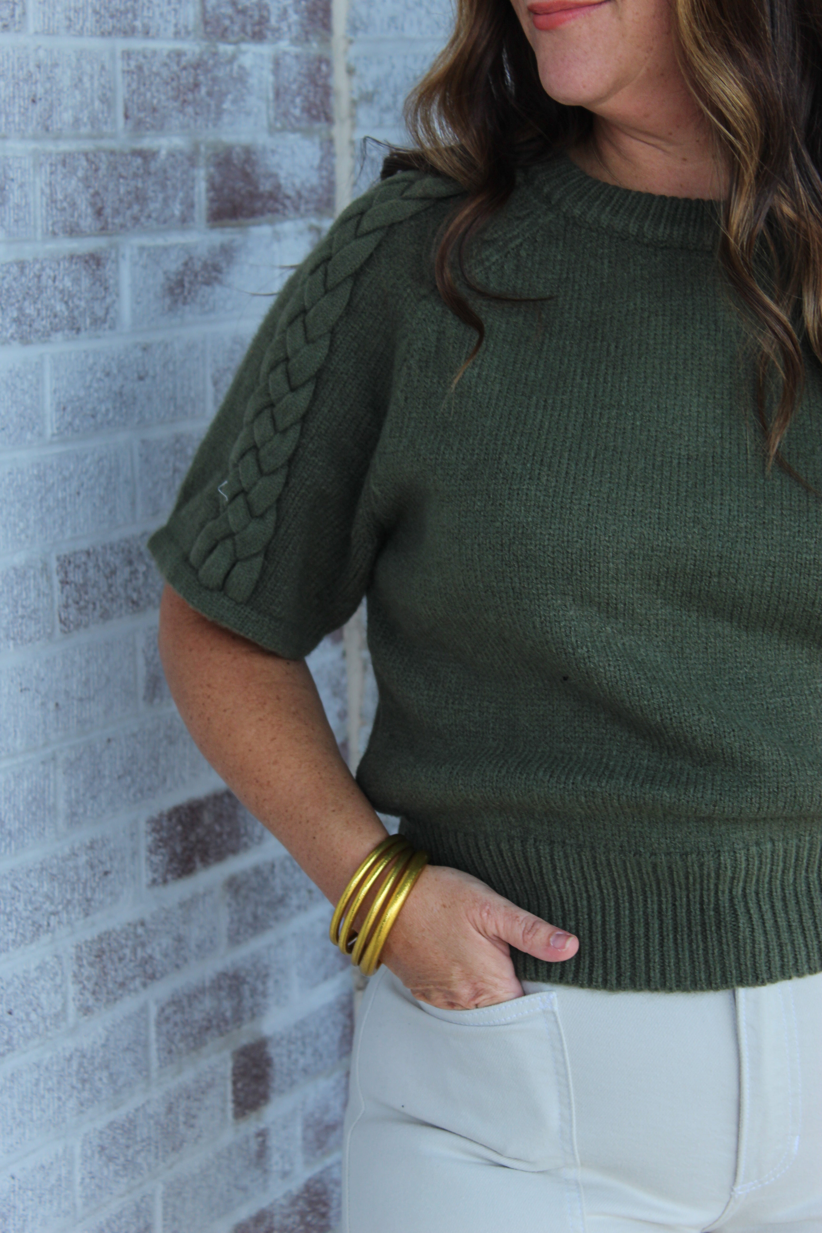 January & May - Autumn Day Solid Braided Sleeve Detail Sweater Top