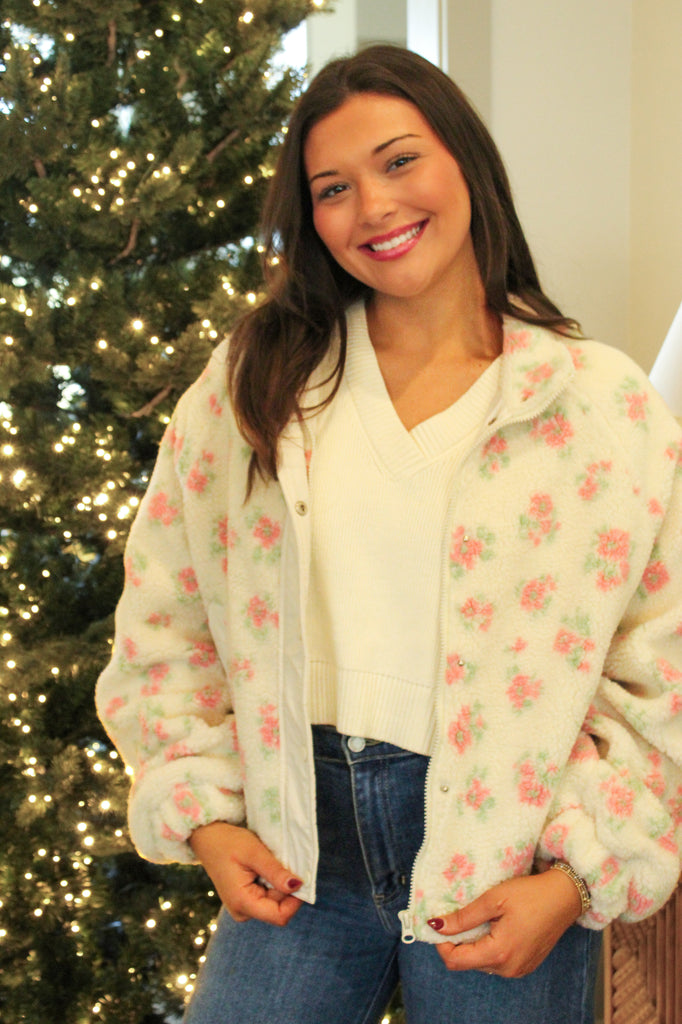 January & May - On To Better Things Floral Print Sherpa Zip Up Jacket