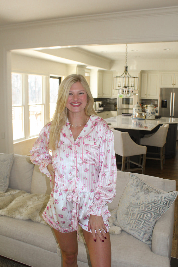 Wild Indigo - Love Bug Stripe & Floral Print Satin SET