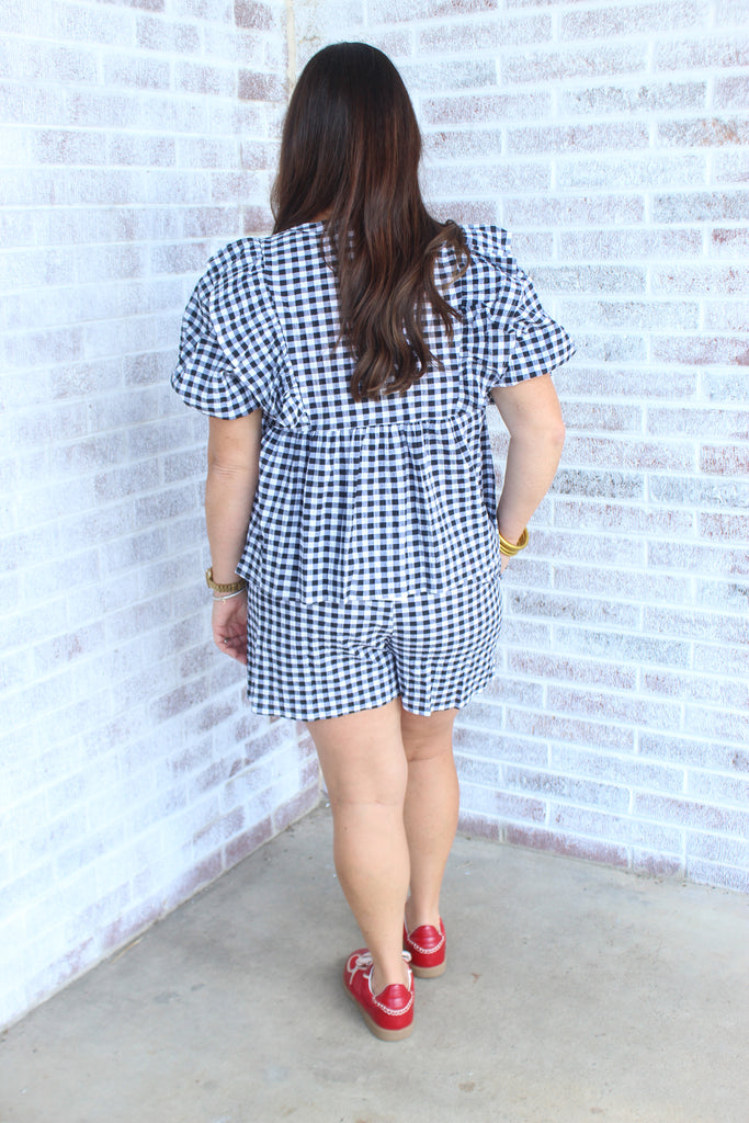 Wild Indigo - Mini Merry Gingham Shorts w/ Pom Poms