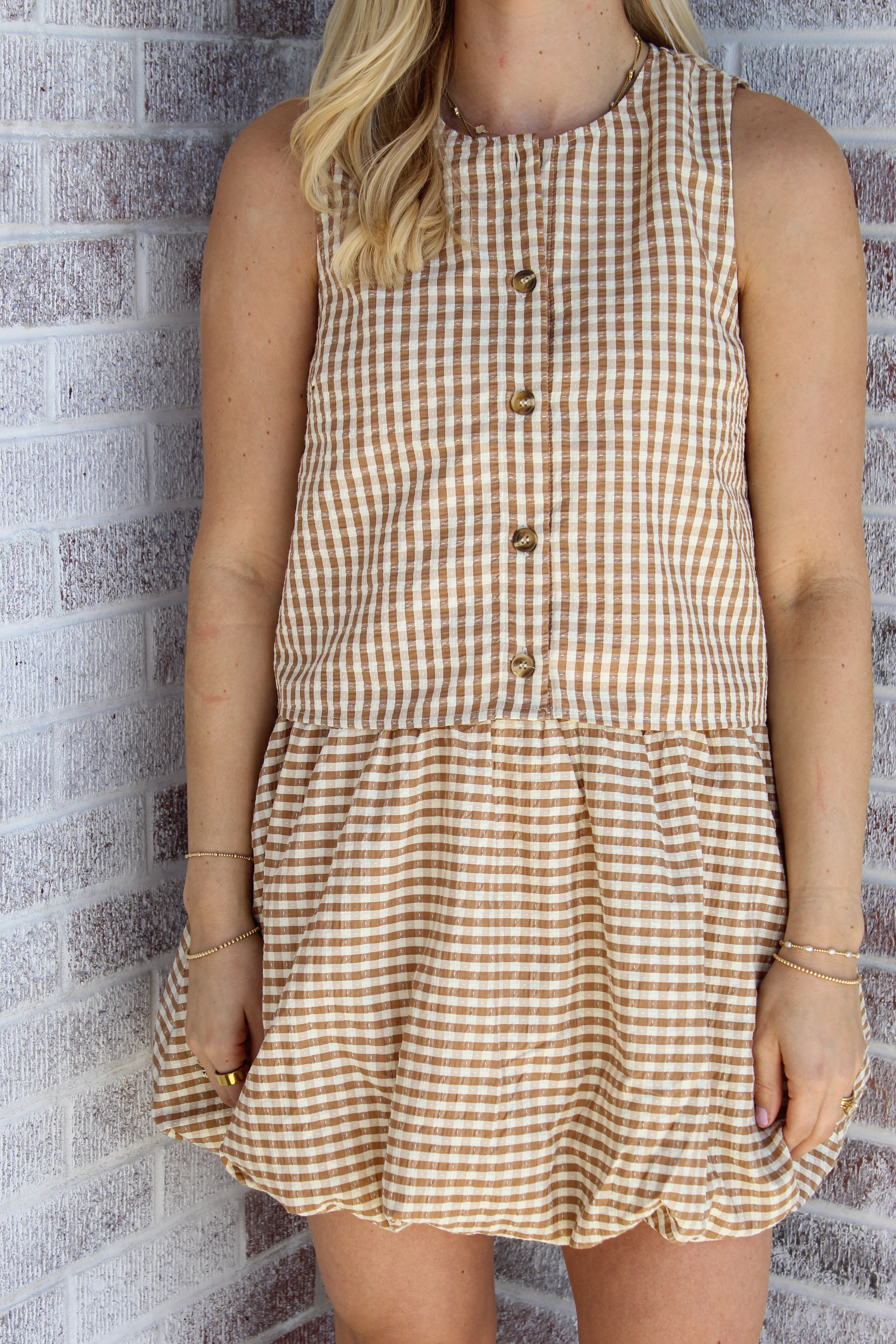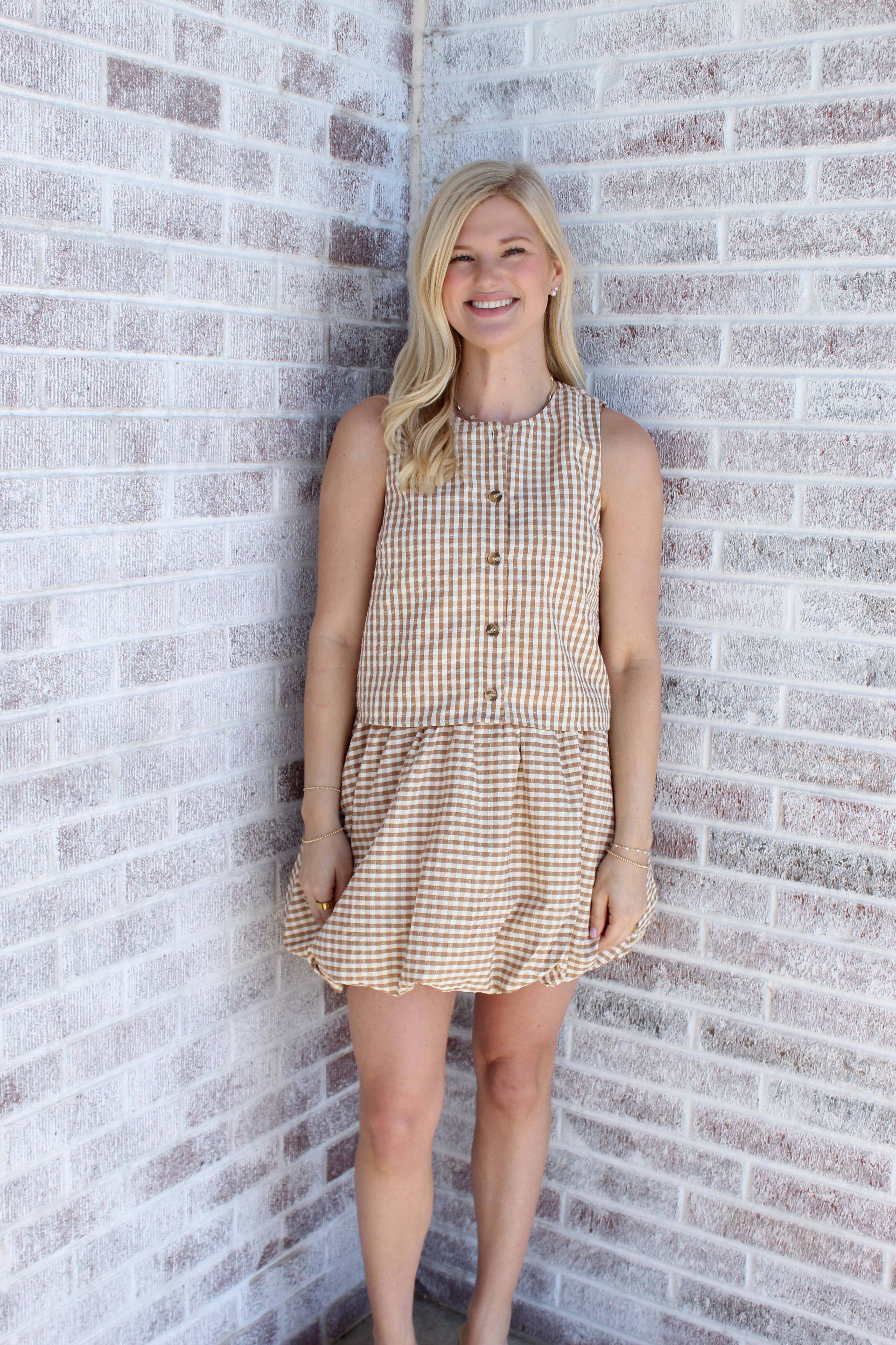 Elevate your wardrobe with this charming gingham bubble mini skirt, featuring a playful silhouette that flatters and moves beautifully. The classic gingham pattern brings timeless appeal to any casual or dressy occasion. Pair it with the matching shirt for a coordinated, put-together look that captures effortless Southern style. Perfect for spring gatherings, weekend outings, or whenever you want to add a touch of whimsy to your everyday ensemble.