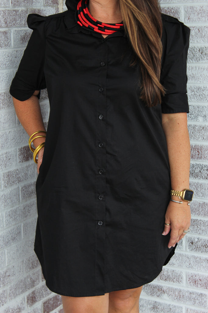 Callie Ruffle Collar Puff Sleeve Shirt Dress