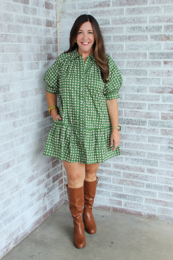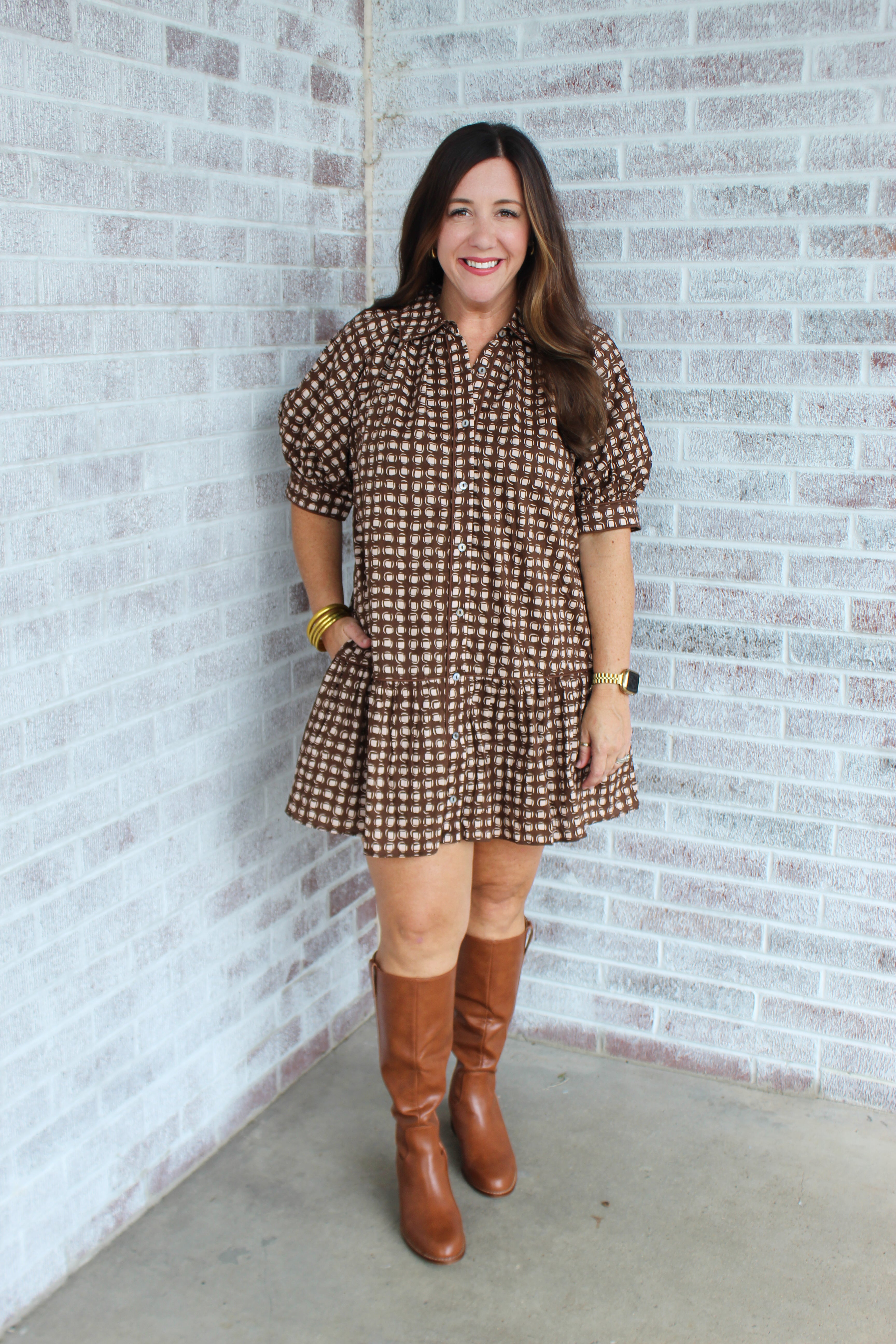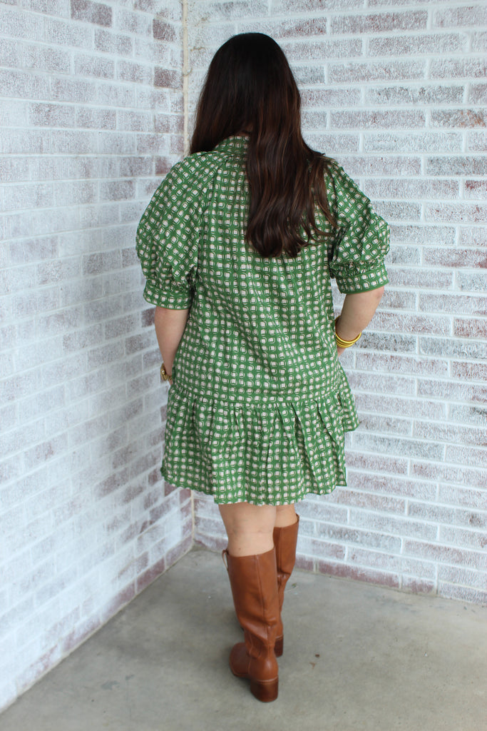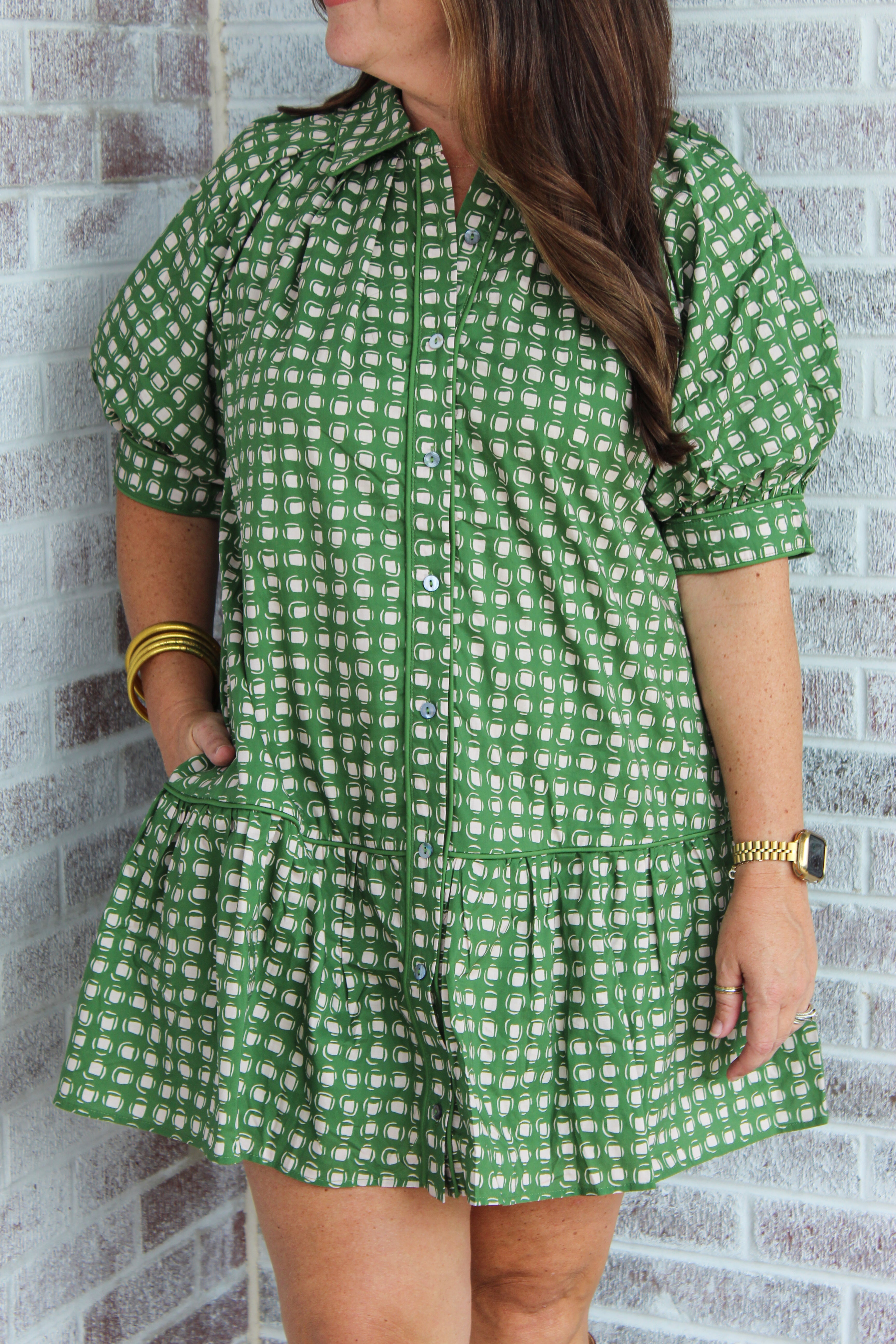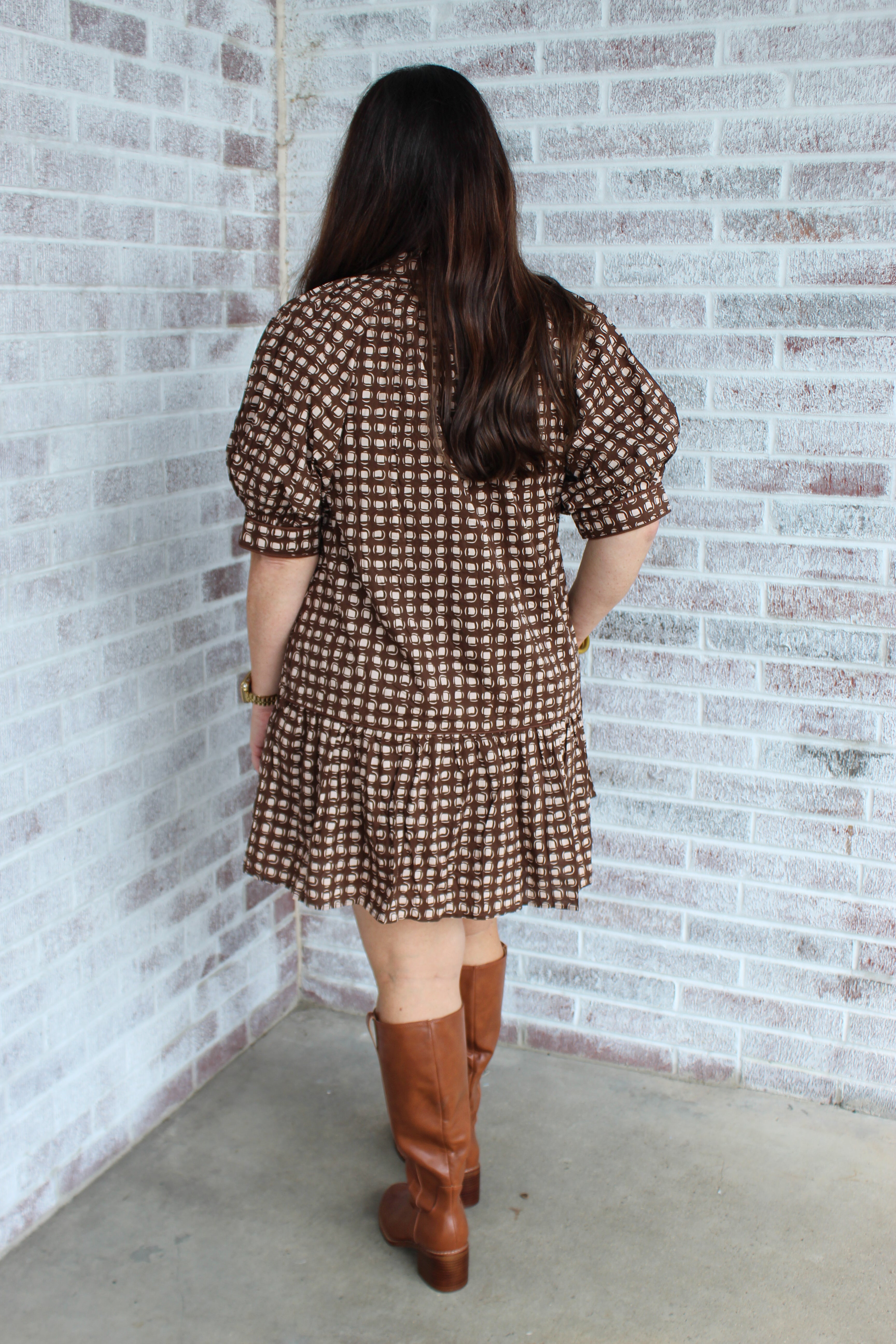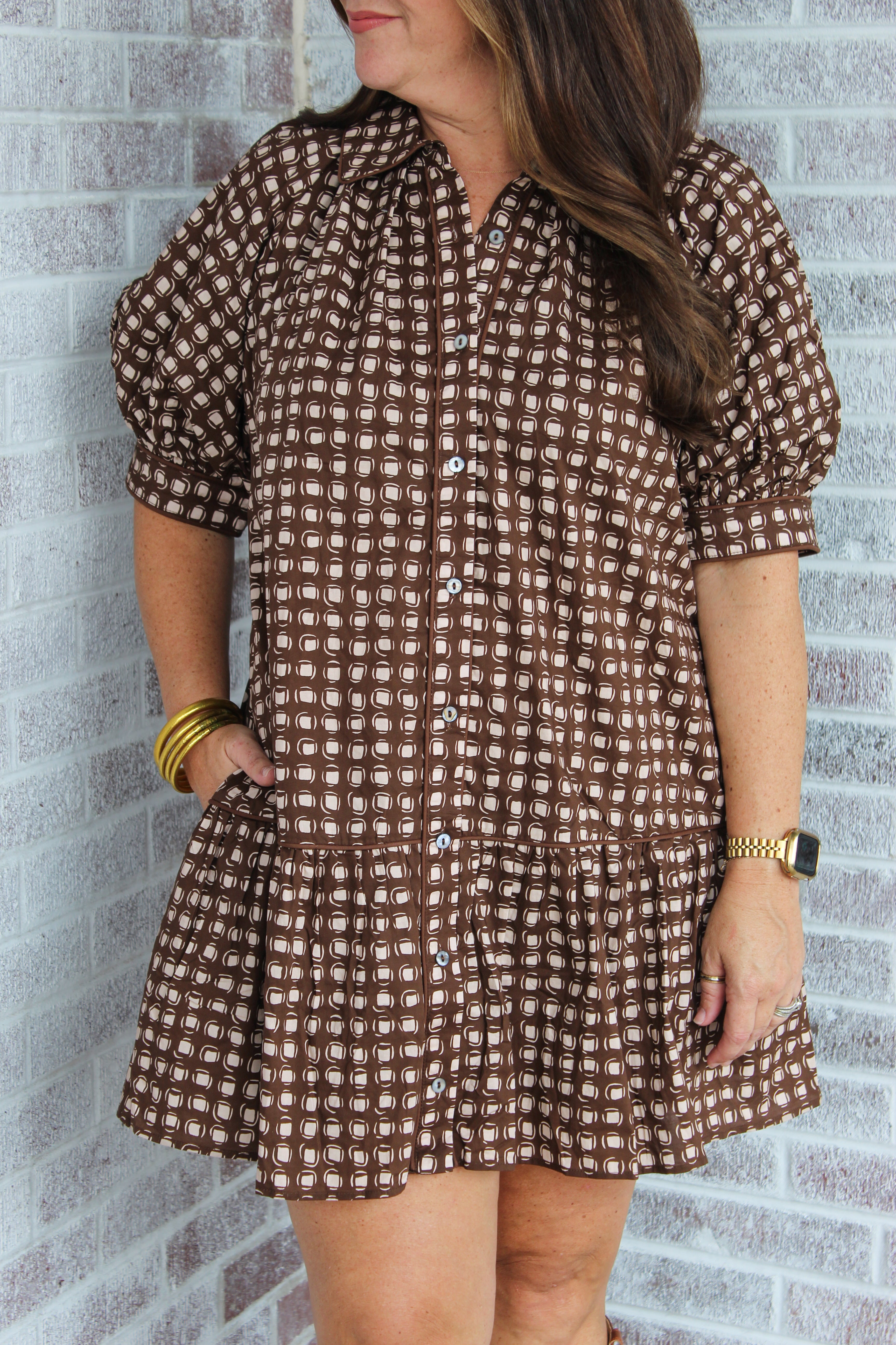 January & May - Miss Always Right Geometric Print Puff Sleeve Mini Dress