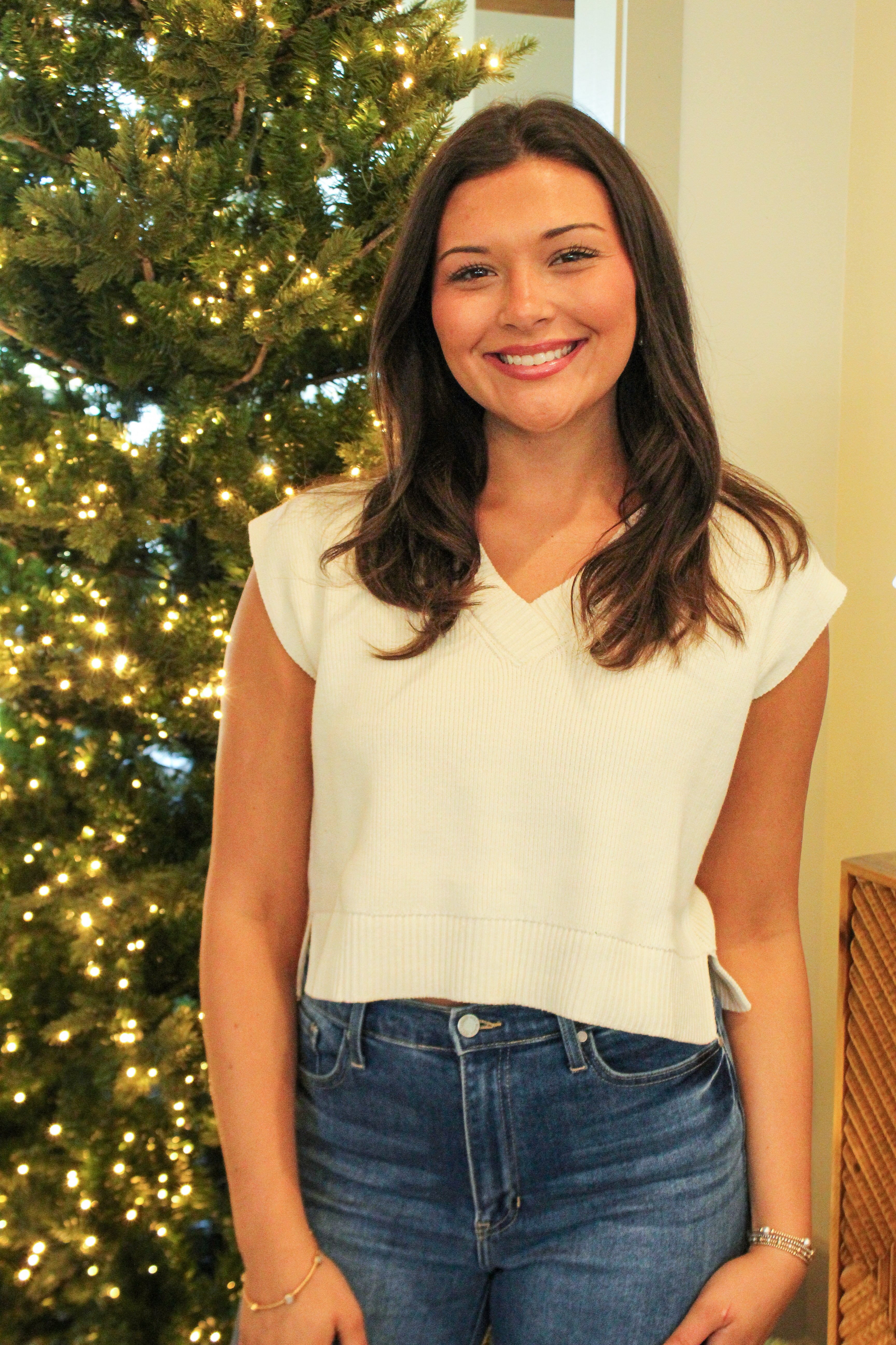 Cheers To You V-Neck Drop Boxy Sweater Rib Neck