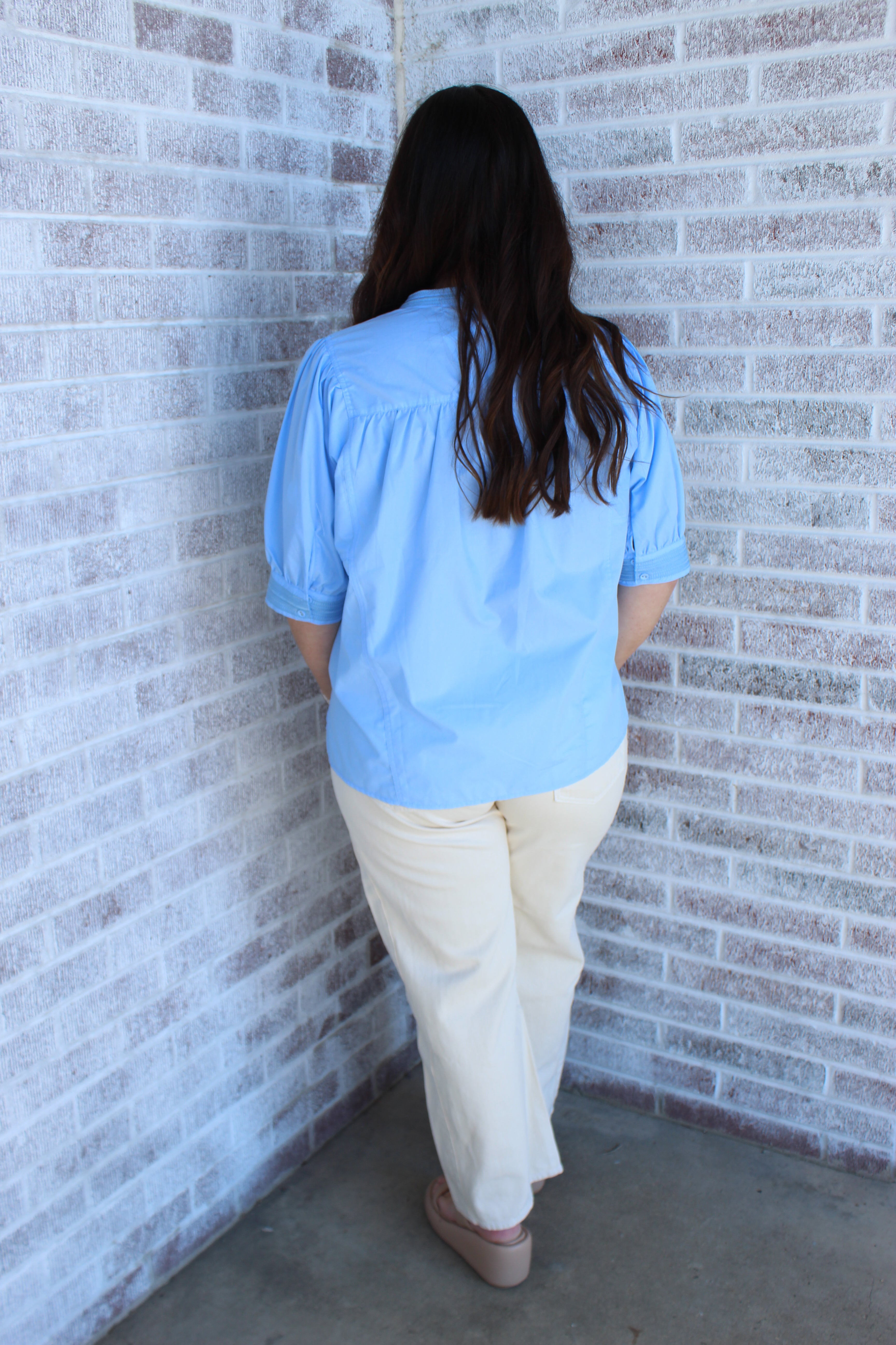 Elevate your spring wardrobe with this charming button-front top featuring delicate puff sleeves that add a touch of romantic flair. The structured silhouette and thoughtful design make it perfect for layering or wearing solo. Versatile enough for casual outings or dressed-up occasions, this piece brings effortless elegance to any seasonal look. A timeless addition that transitions beautifully from day to evening wear.