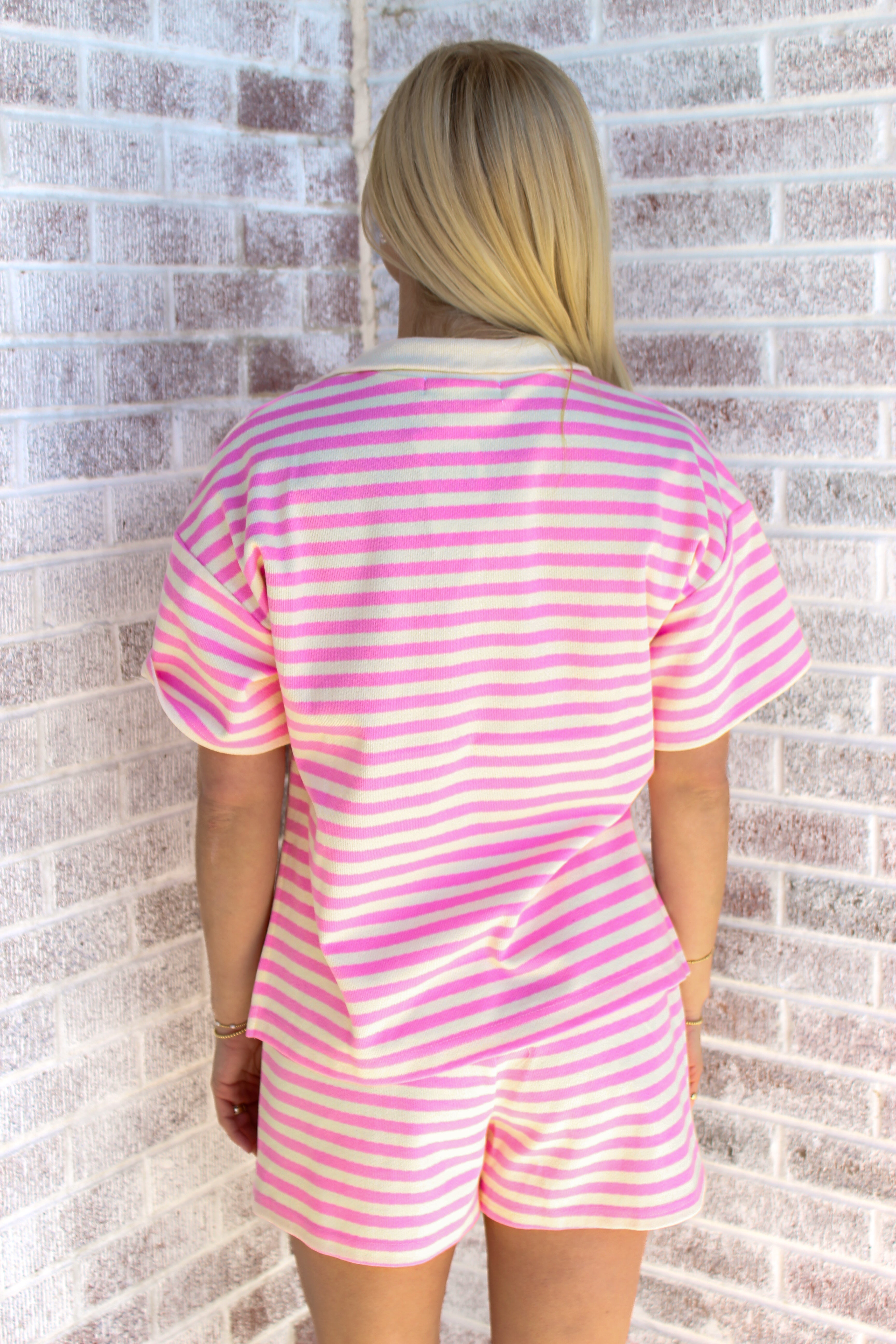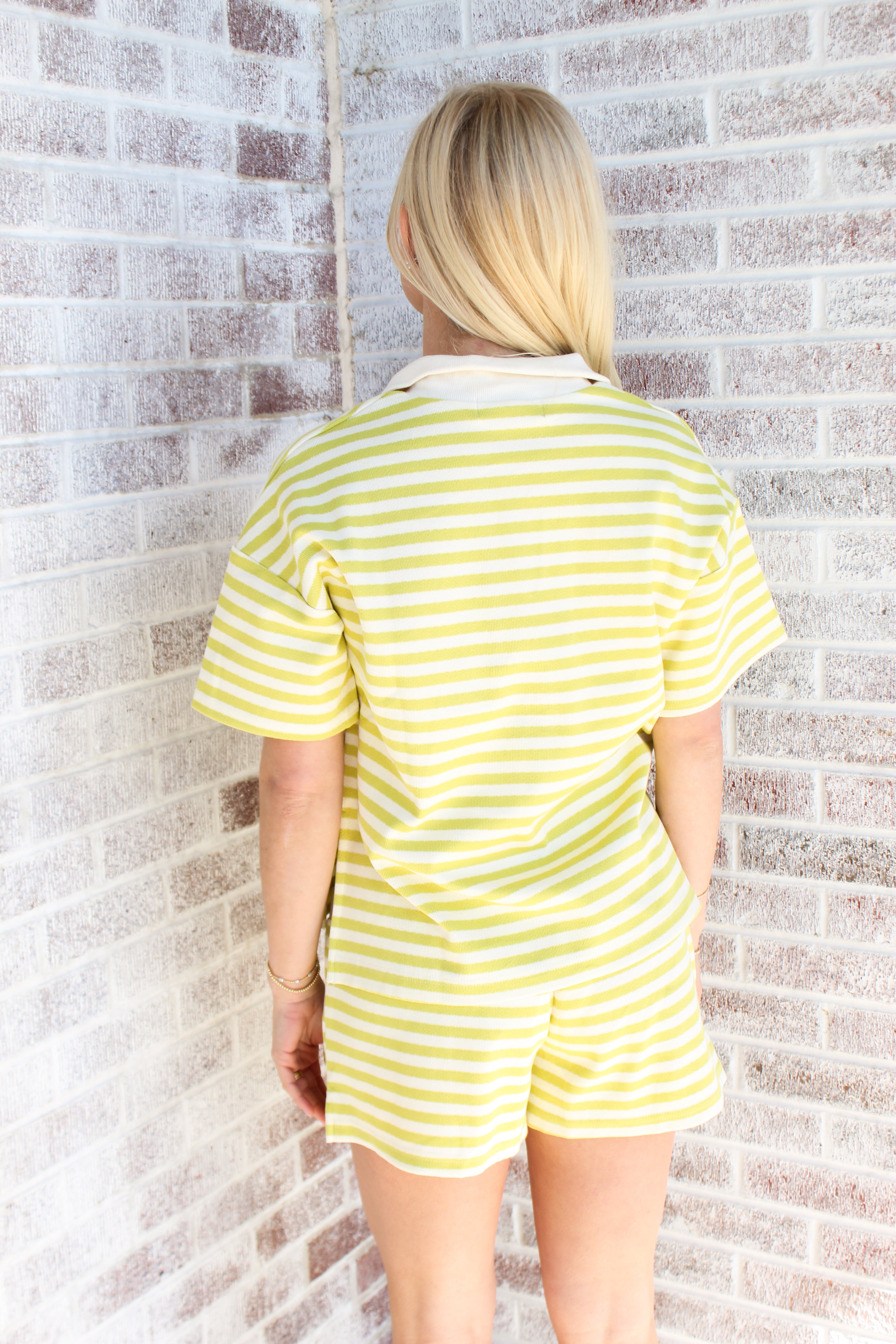 January & May - Through It All Solid Stripe Collared V-Neck Top