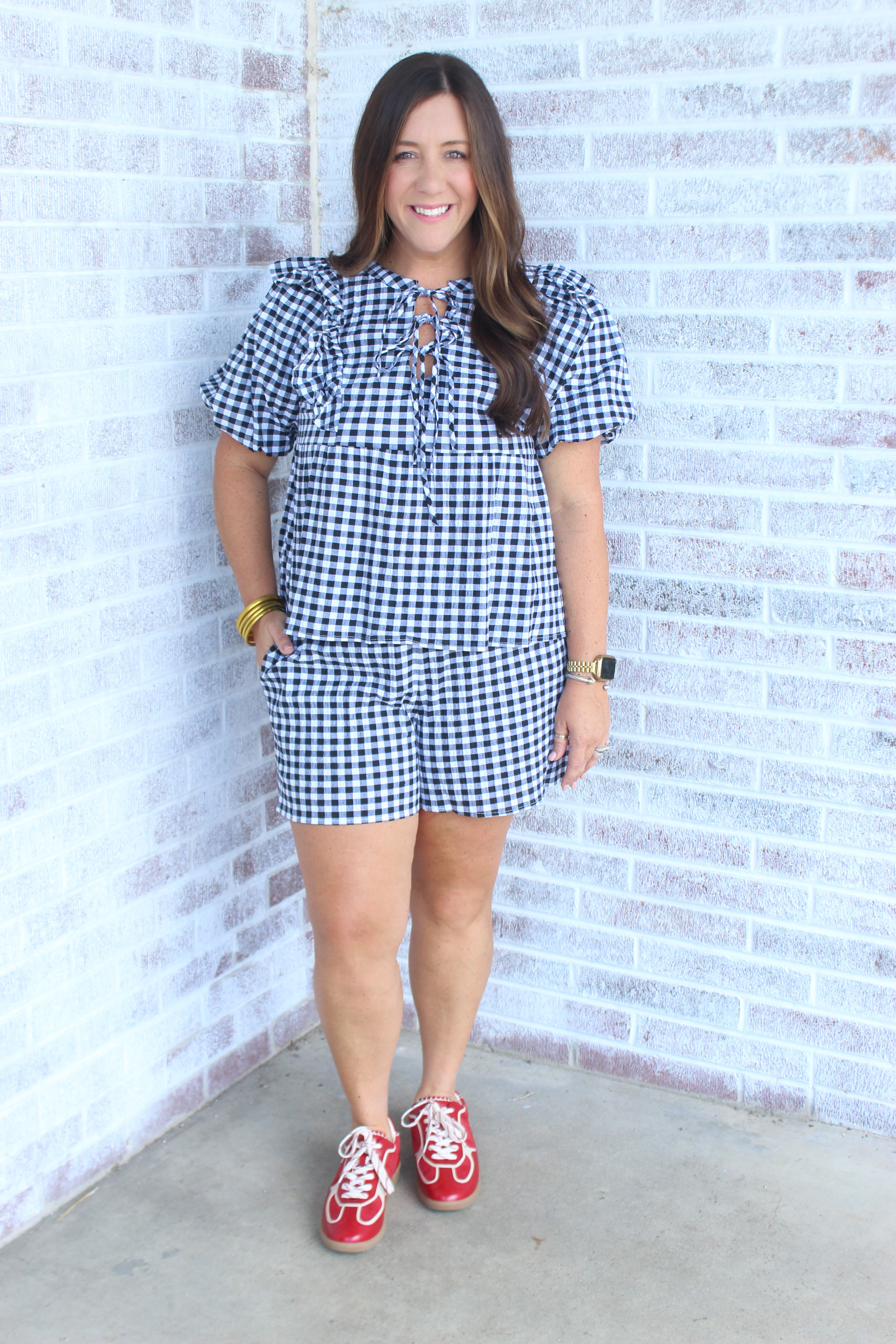 Juliette Front Tie Peplum Top w/ Bubble Sleeve