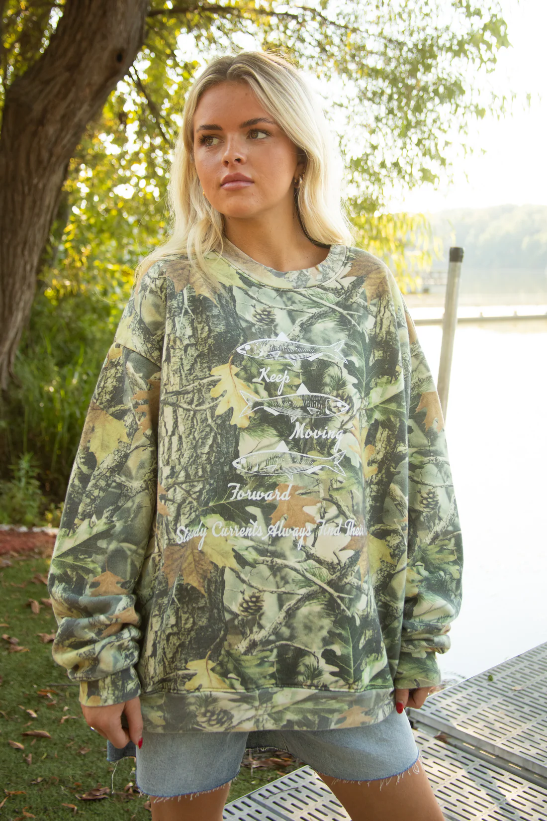 Friday + Saturday - Keep Moving Forward Camo Sweatshirt