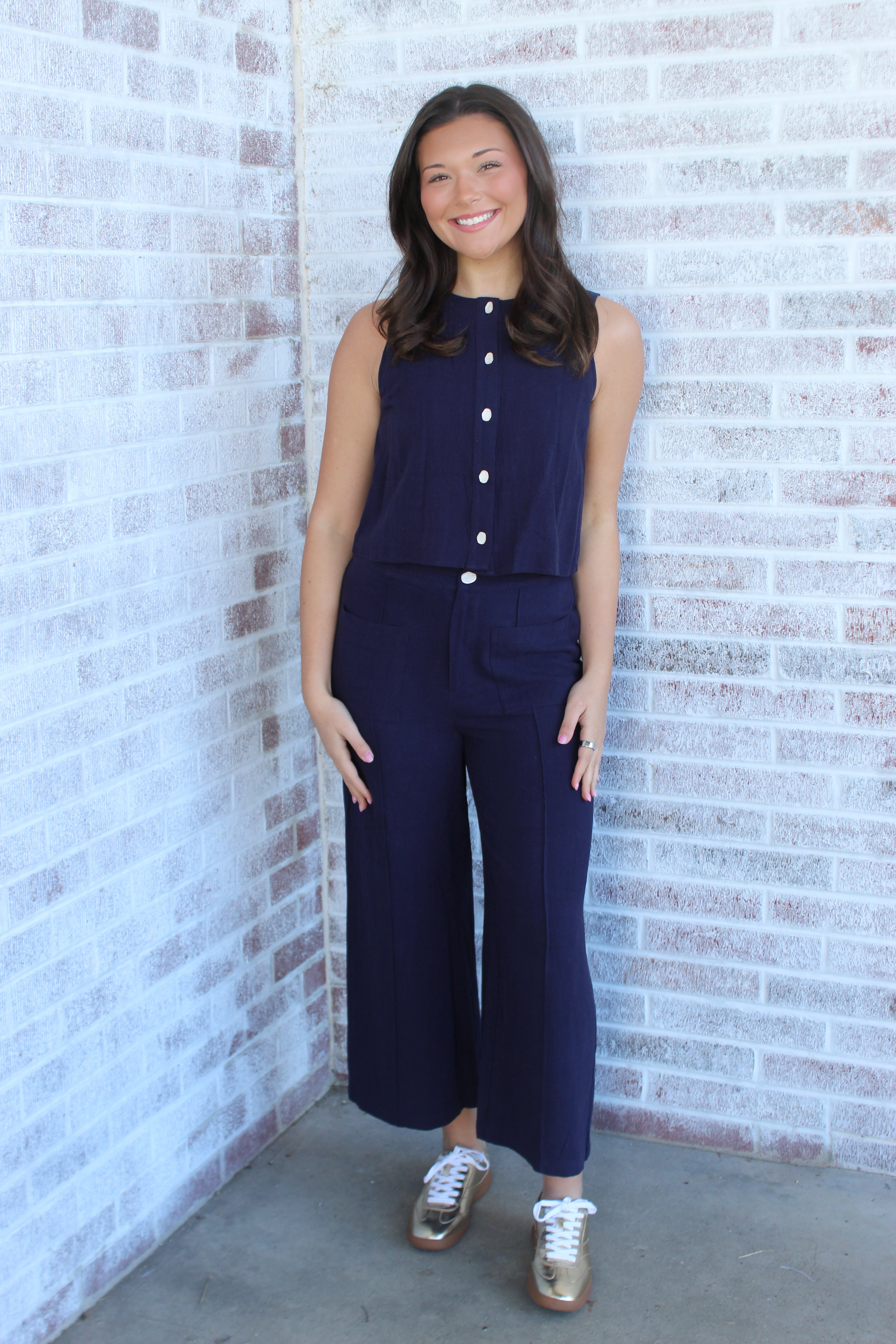 Get The Girl Button Front Sleeveless Top Effortless charm meets laid-back style with this linen-like sleeveless top. The button-front detail adds a flirty touch that works just as well dressed up for brunch or paired with your favorite jeans for weekend vibes. Crafted from a breathable, lightweight fabric, it's the perfect piece for warm-weather dressing when you want to look put-together without trying too hard.