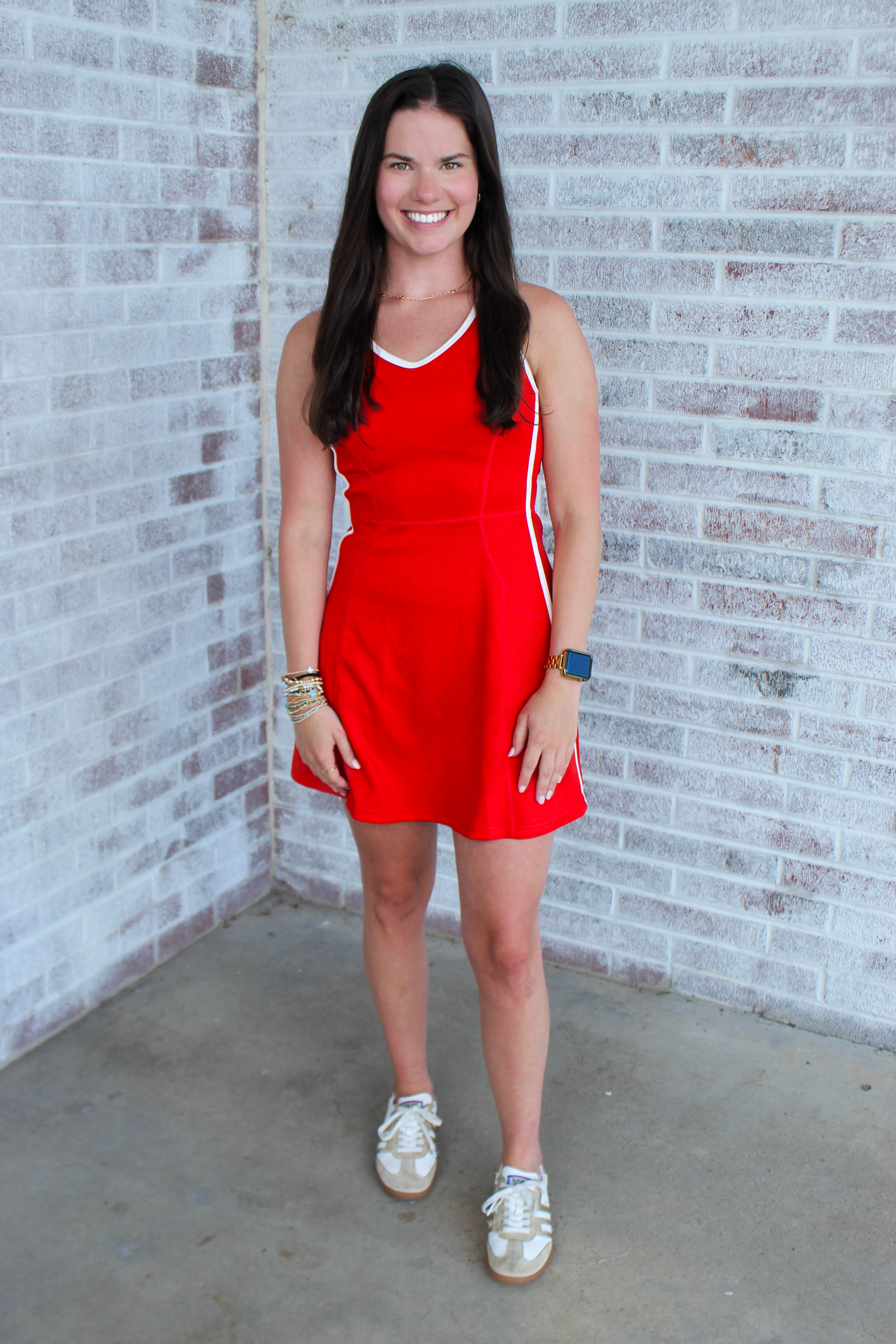 Get ready to turn heads in the January & May Americana Athletic Mini Dress! Featuring sporty contrast trim and built-in shorts, this playful dress keeps you comfy and stylish whether you're on the move or out with friends. Perfect for adding a fun, athletic vibe to your wardrobe.