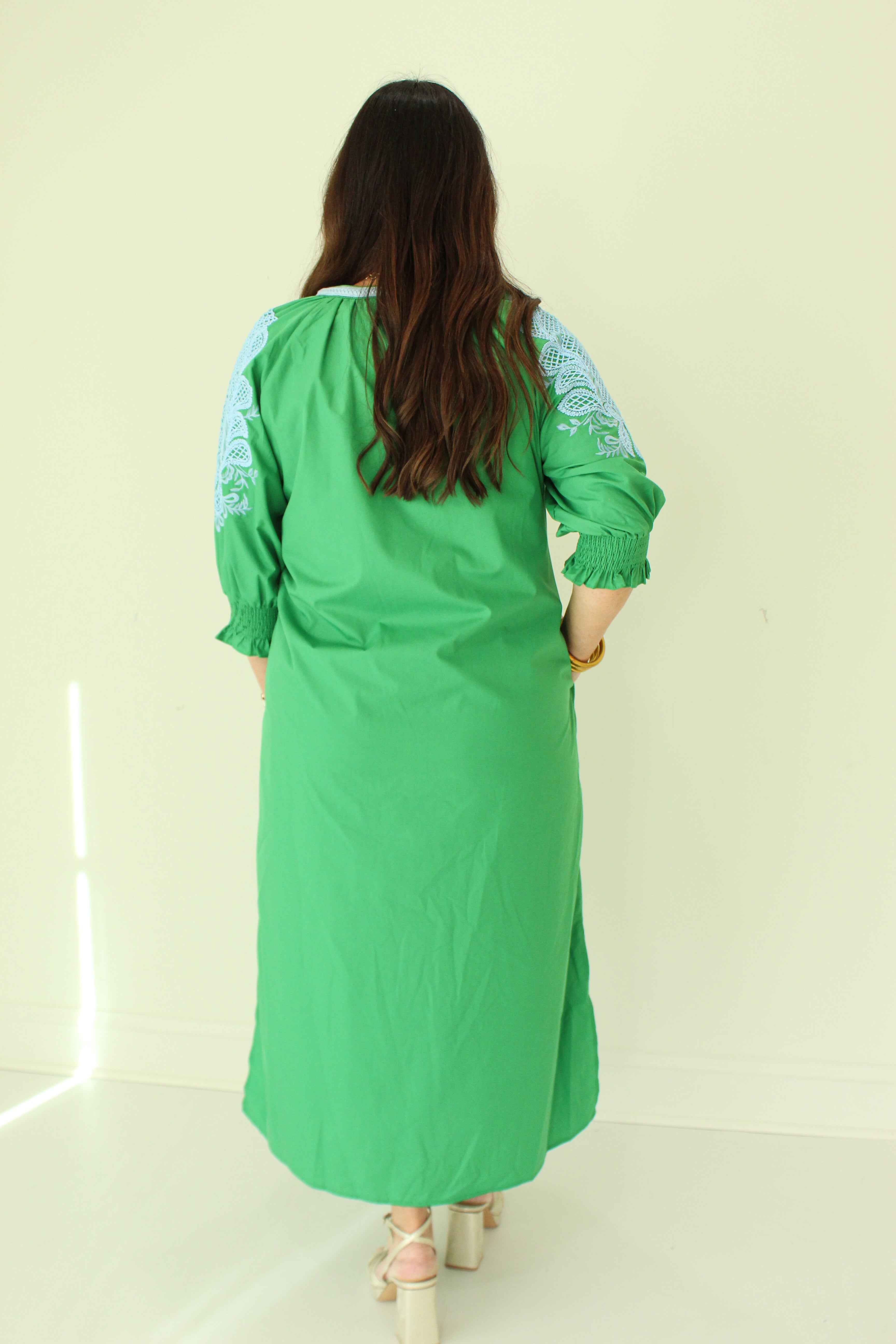 Elevate your style with the January & May Calling For You Embroidered Detail V-Neck Midi Dress. Featuring charming puff sleeves and exquisite embroidered details, this caftan dress embraces both elegance and comfort. Feel beautiful and confident with every wear—this dress is a stunning choice for any occasion!