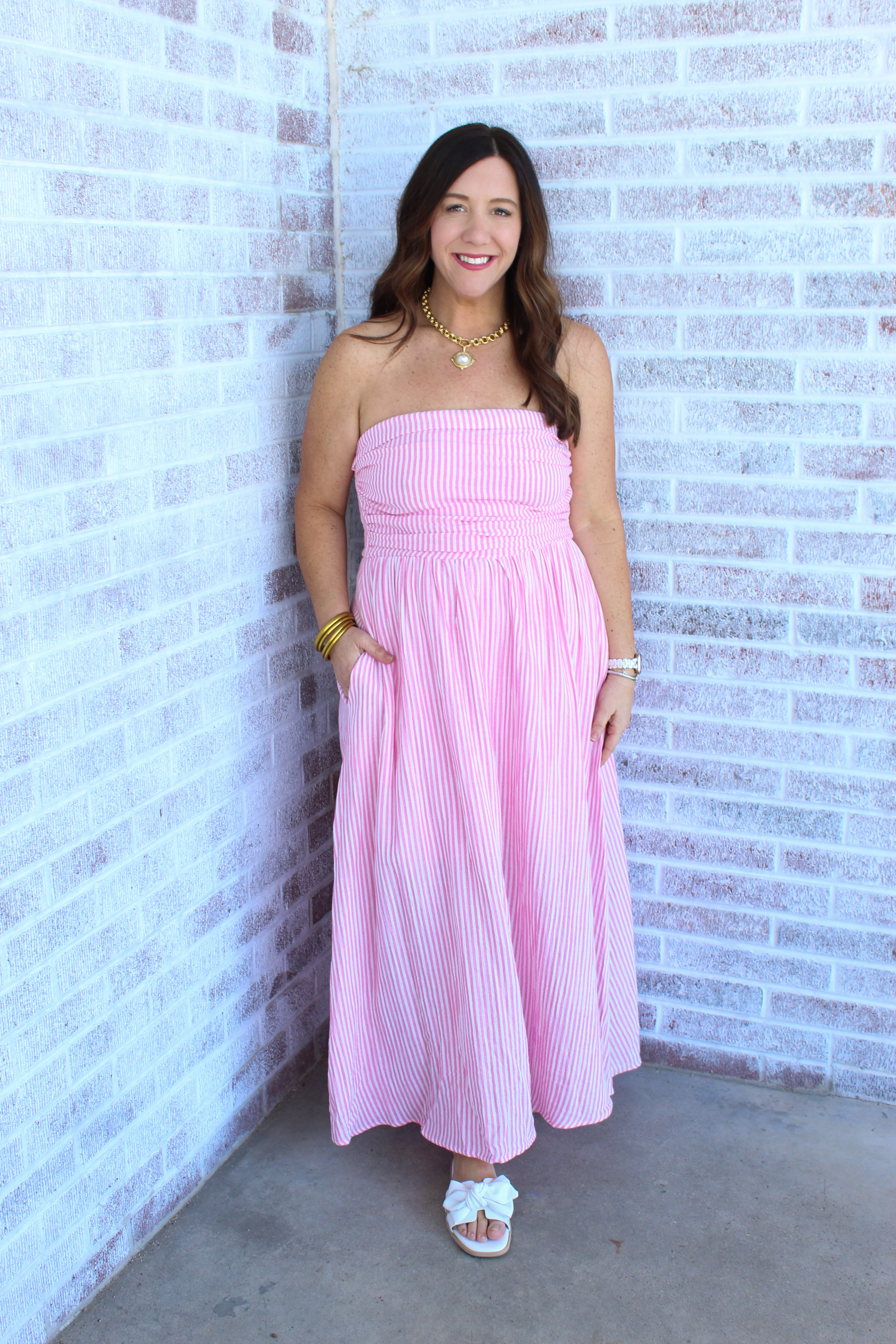 Meet Me In Santorini - Pink Gauze Stripe Maxi Dress
