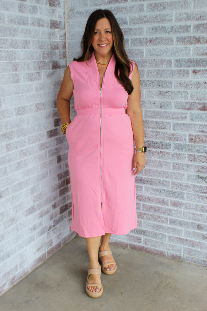 January & May - Bring Me To Life Solid Sleeveless Zip Up Midi Dress *FINAL SALE*