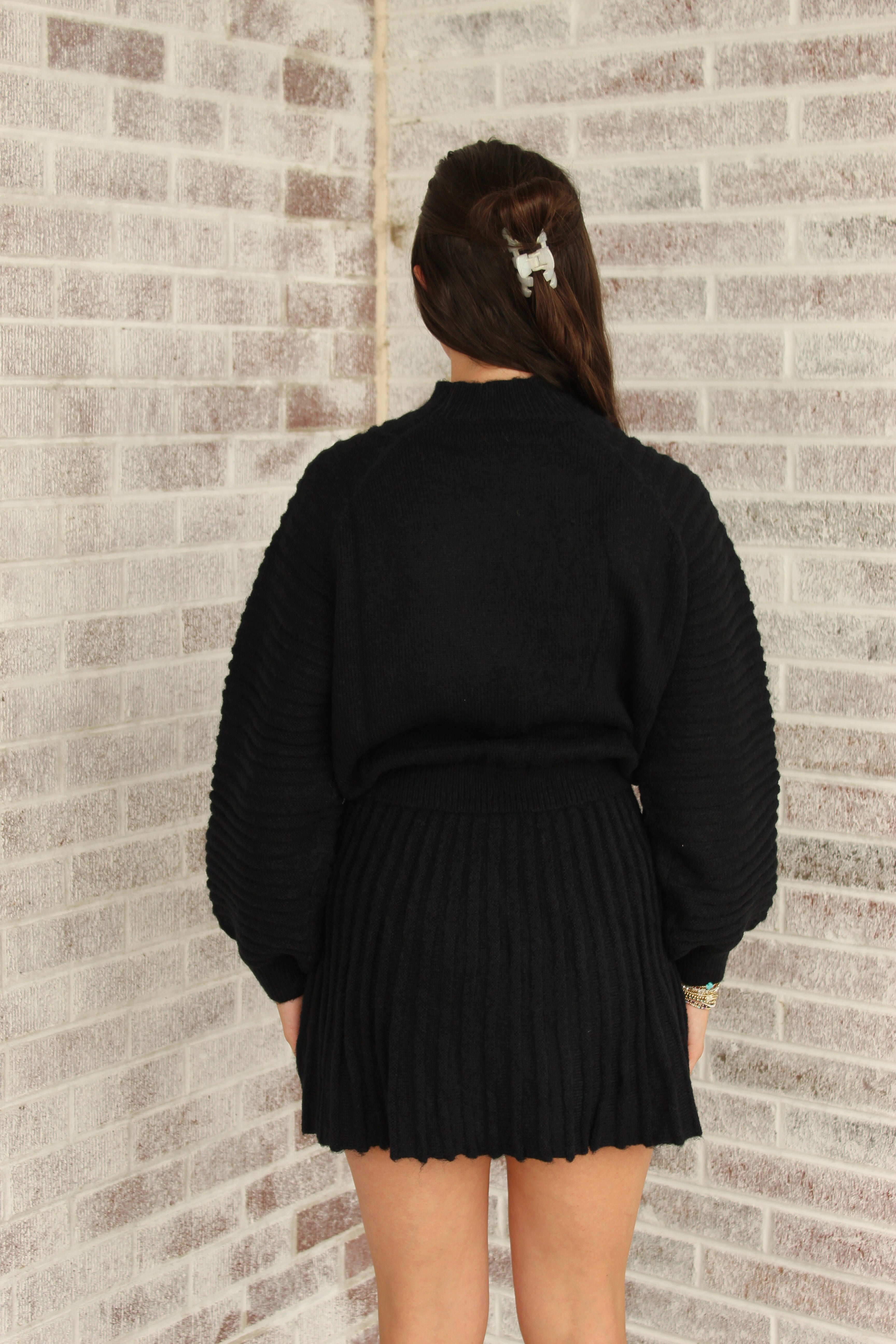 Pair our Farrah Sweater Skirt with the matching sweater for a complete and stylish fall outfit. This black skirt is perfect for the season and pairs well with the matching sweater. Get the perfect fall look with Sincerely Ours. (Sweater sold separately)!